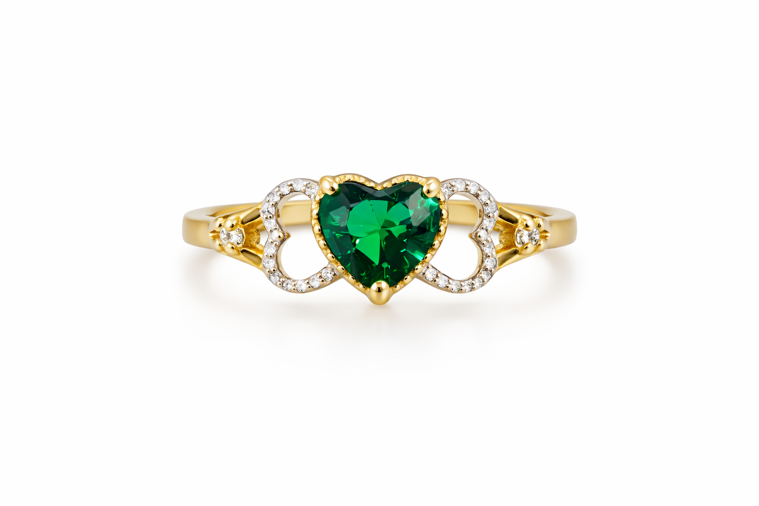Fall in love with romantic elegance with this 14k gold ring featuring a heart design and a beautiful green stone, a fine jewelry piece that combines love and sophistication. Designed for the woman who appreciates authentic luxury and the symbols of true love.